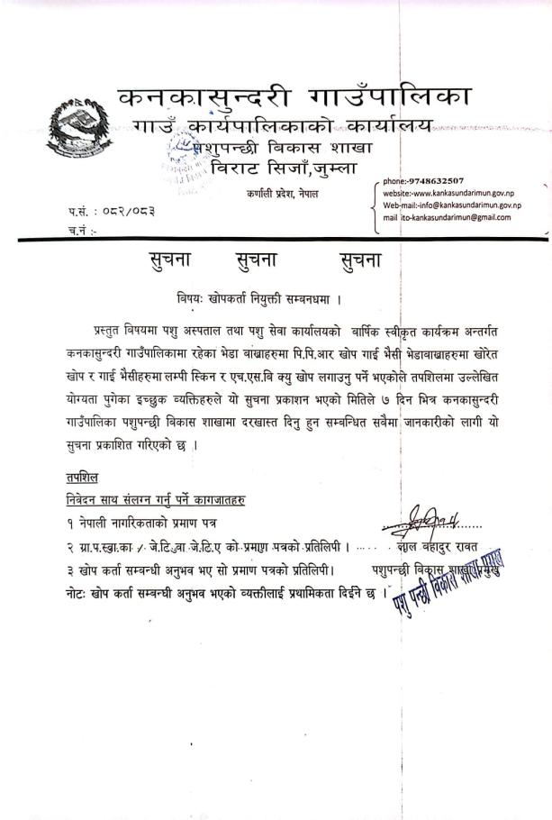 खाेपकर्ता नियुक्ति सम्बन्धि सुचना ।