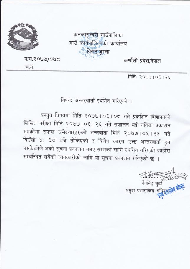 अन्तरवार्ता स्थगित गरिएको सुचना