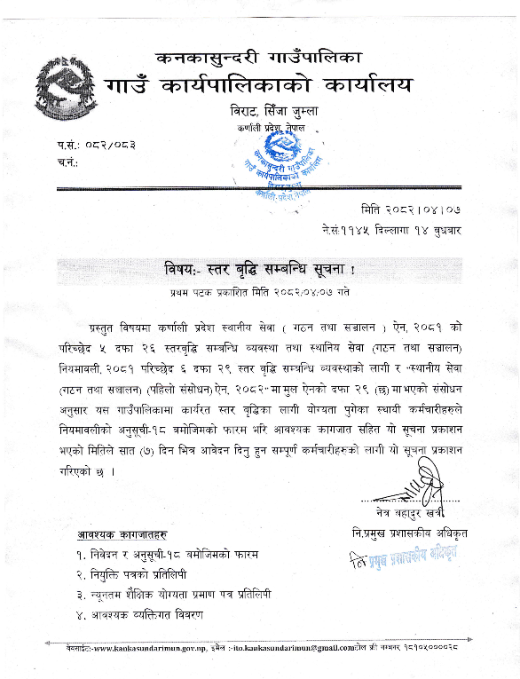 स्तर बृद्धि सम्बन्धि सूचना ।